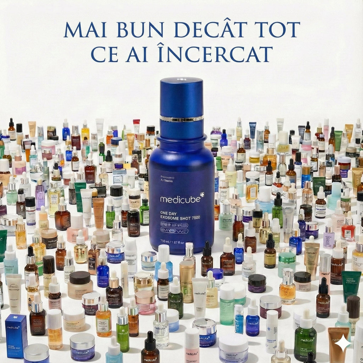 Un produs viral iubit de toți: Transformă-ți tenul cu Booster-ul cu Exozomi. Creat cu micro-particule sub formă de ace și 15 milioane de doze brevetate, acesta transportă ingredientele active adânc în pori pentru a combate cu precizie multiple probleme ale pielii.